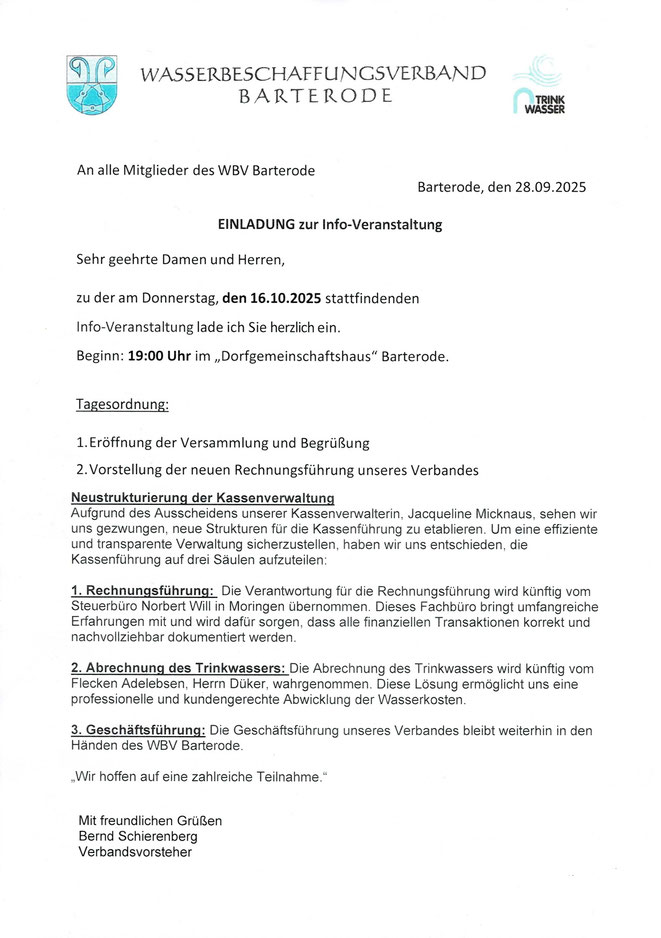 Willkommen beim Wasserbeschaffungsverband Barterode